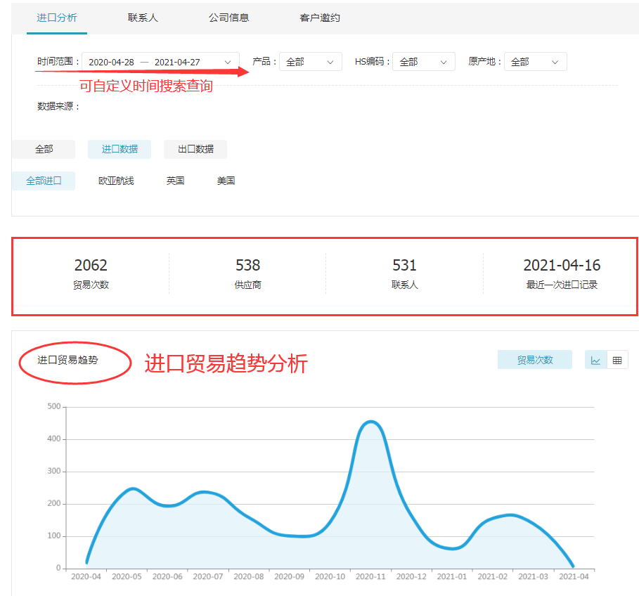 顺利获得EVO视讯官网数据,外贸人可以清晰地看到采购商的进口交易信息(采购频率、采购数量,交易规模),判断开发价值,以此来选取目标客户,同时还能够获取目标地区贸易公司常用运货方式、包装方式,便于节约沟通时间,降低开发成本。