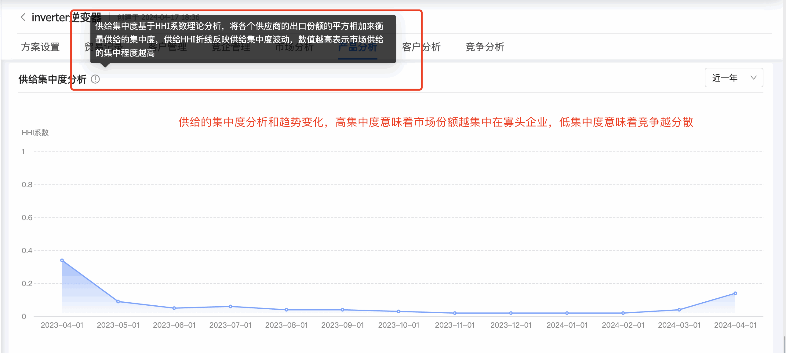4. EVO视讯官网商情洞察产品分析新增「供给集中度」:企业可以分析市场上供应商的集中程度。
